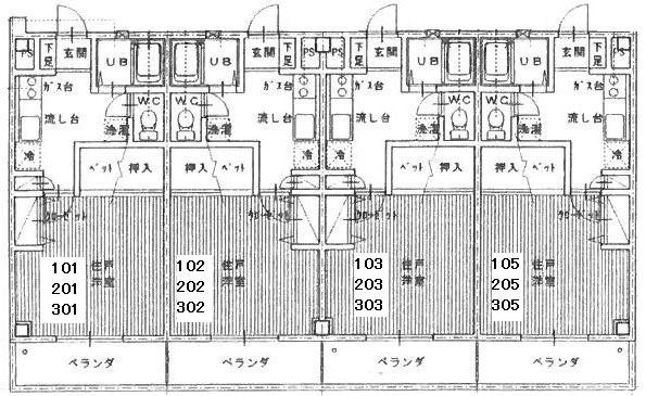 | 契約期間 | 2年 | 現況 | 退去…101号室、203号室、301号室 |