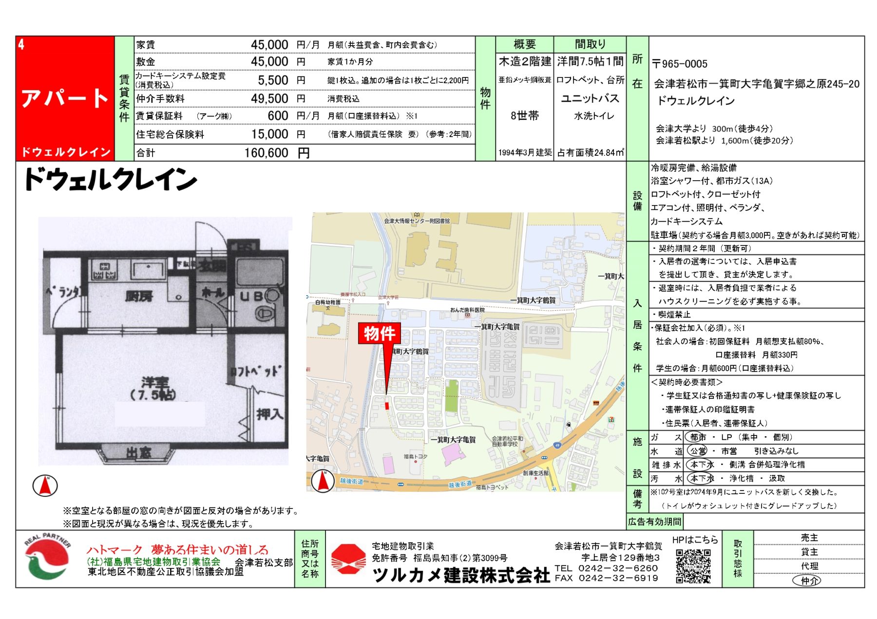 交通JR磐越西線 会津若松 徒歩20分所在地会津若松市一箕町大字亀賀字郷之原245-20