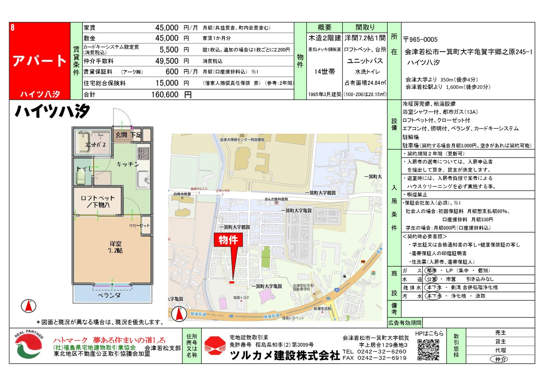 | 交通 | JR磐越西線 会津若松 徒歩20分 | 所在地 | 会津若松市一箕町大字亀賀字郷之原245-1 |