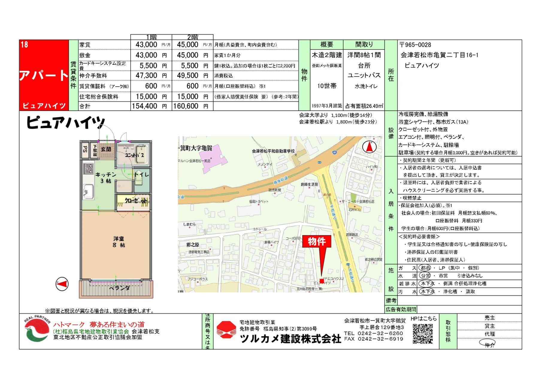 | 交通 | JR磐越西線 会津若松 徒歩23分 | 所在地 | 福島県会津若松市亀賀二丁目16-1 |